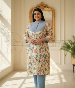 Kalamkari Kurti with Denim's Fusion